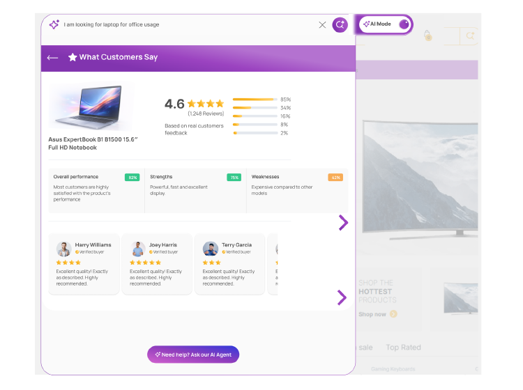 Continuously guide shoppers, interpret intent signals, and provide immediate, contextual support. Deliver precise recommendations, streamline evaluation, and accelerate the journey from exploration to purchase.