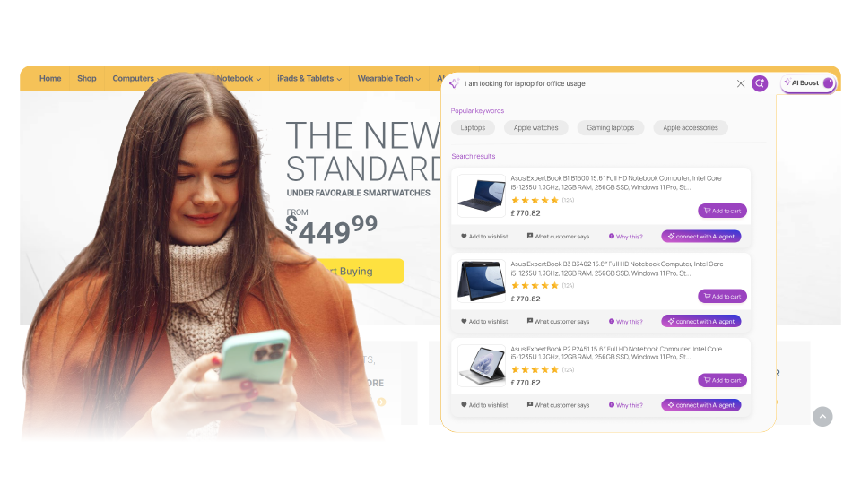 VendifAI reduces friction in the buying journey by helping shoppers find the right product faster, compare options, and move directly to checkout, leading to higher engagement and improved conversion rates