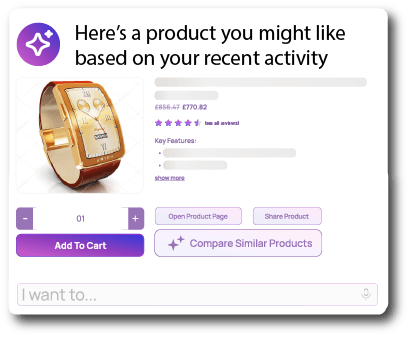 Most AI assistants wait passively for shoppers to click. VendifAI doesn’t. It initiates the journey with an engaging prompt that invites interaction. One click opens a fully guided shopping experience, helping users explore, compare, and convert with confidence.